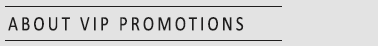 Let VIP Promotions offer you a professional corporate branding solution encompassing all points of contact from your Banner Advertising to your Corporate Uniform and finally to that perfect Corporate Gift.